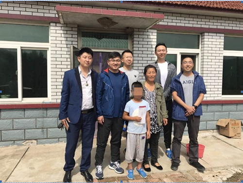 2017年9月9日7:00,第九届MBA联合会主席郭洪旭、部分联合会骨干以及MBA教育中心办公室主任毕猛准时出发,历时3小时到达辽宁省抚顺市清原县敖家堡小学,随后走访慰问本次活动的具体捐助对象:乔*峰、夏*瑶、周*轩、王*雨,徐*然五位同学,总计捐助4400元,用于这五名同学该学期的车费以及午餐费,具体捐助明细将于后续公布。
