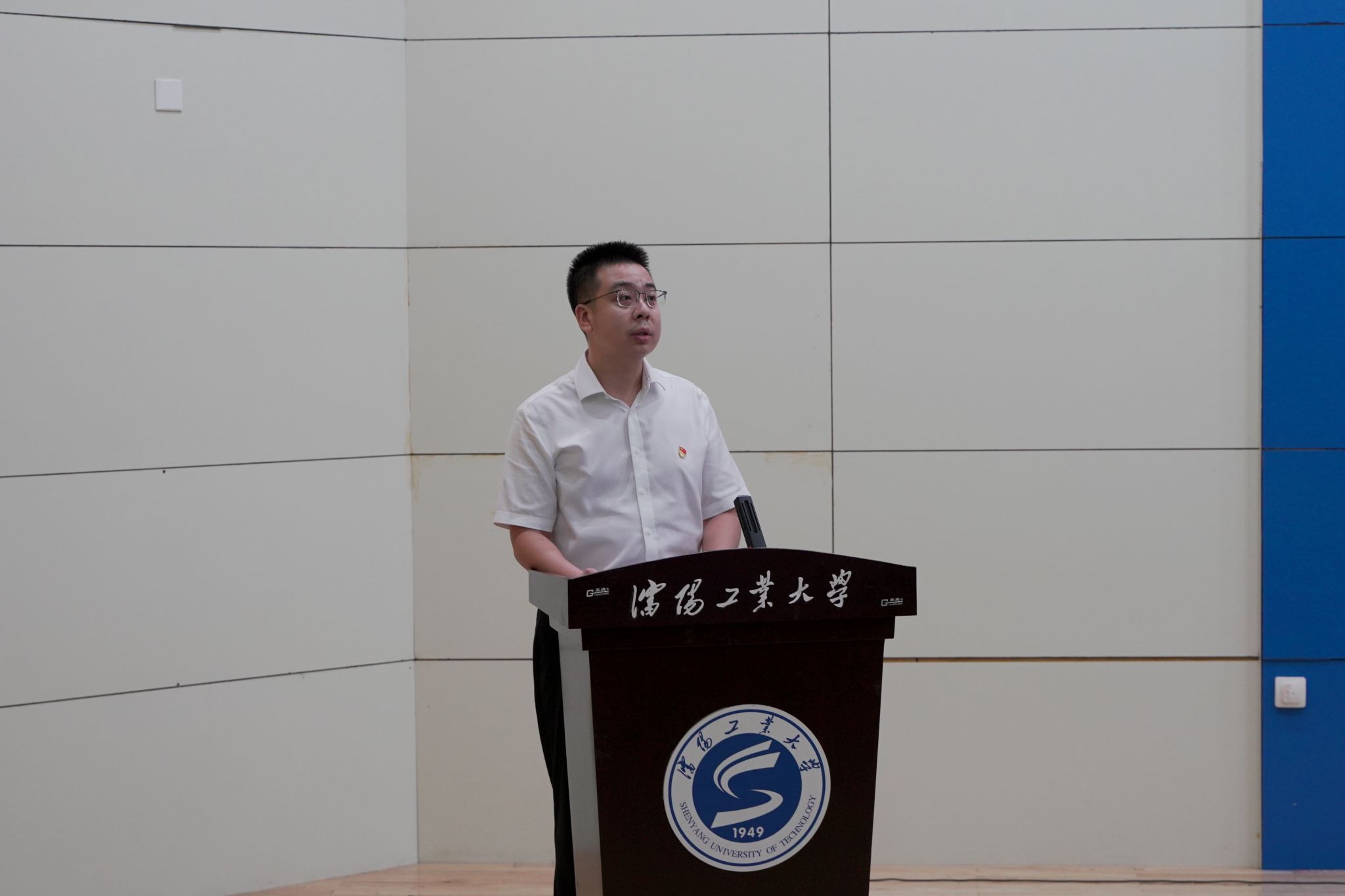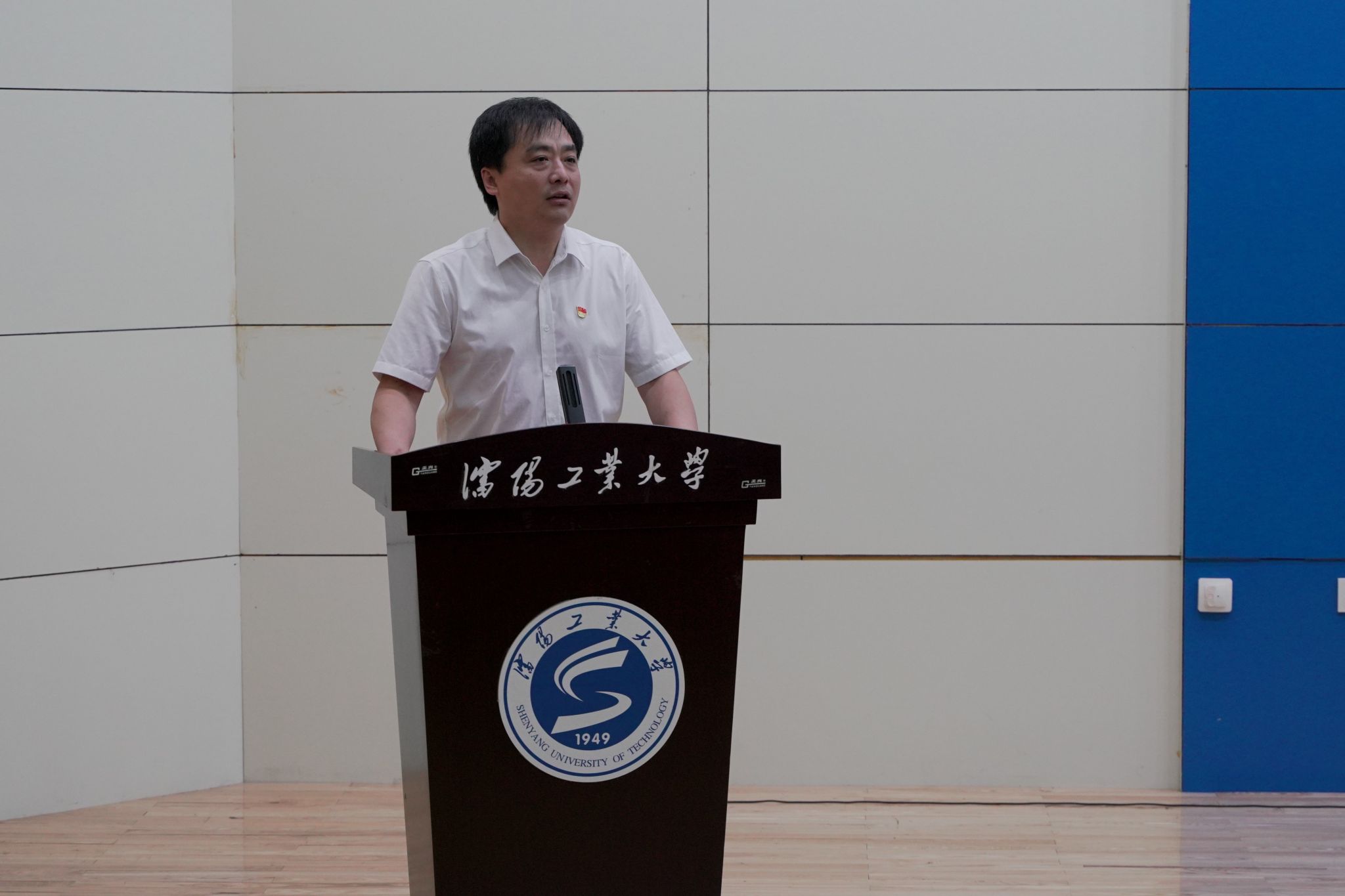 学院党委书记兼副院长吕庆涛讲话,吕书记分别从打牢专业基础、潜心科学学术、注重交叉融合三方面给大家提出来中肯的建议和殷切嘱托,希望全体研究生新生肩负家国梦想,以工大机械人特有的精、气、神认真开启人生下一步旅程。
