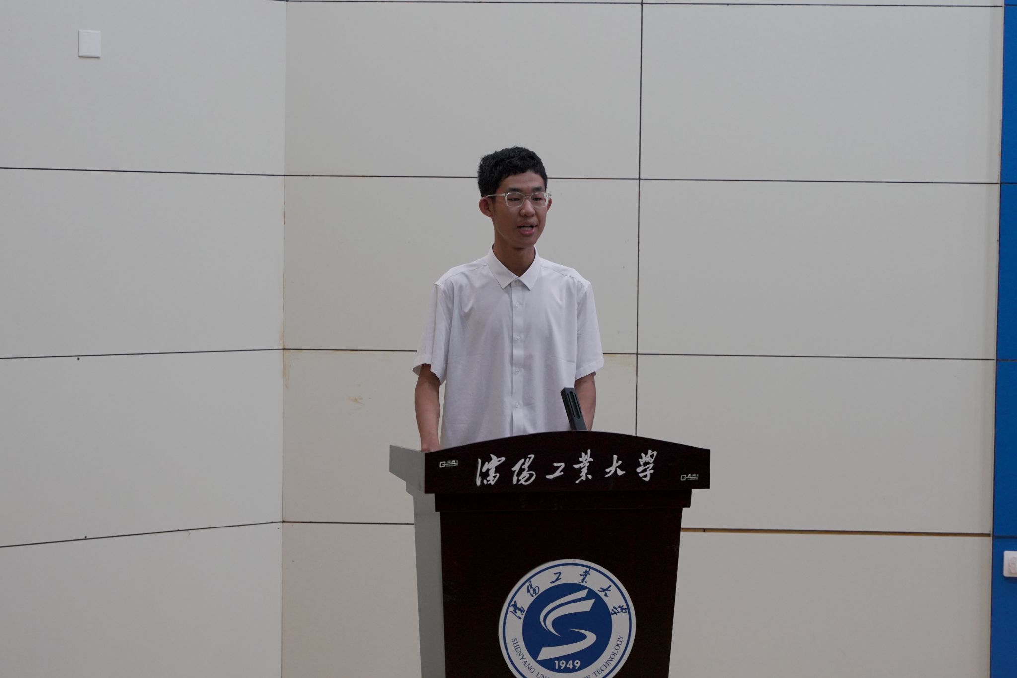新生代表机自2304班张巨来同学发言,张巨来同学代表全体新生从找准方向、珍惜时间、团结友爱三个方面,明确要立大志、明大德、成大才,担大任。要志存高远,胸怀国之大者,努力成为可堪民族复兴重任的时代新人。