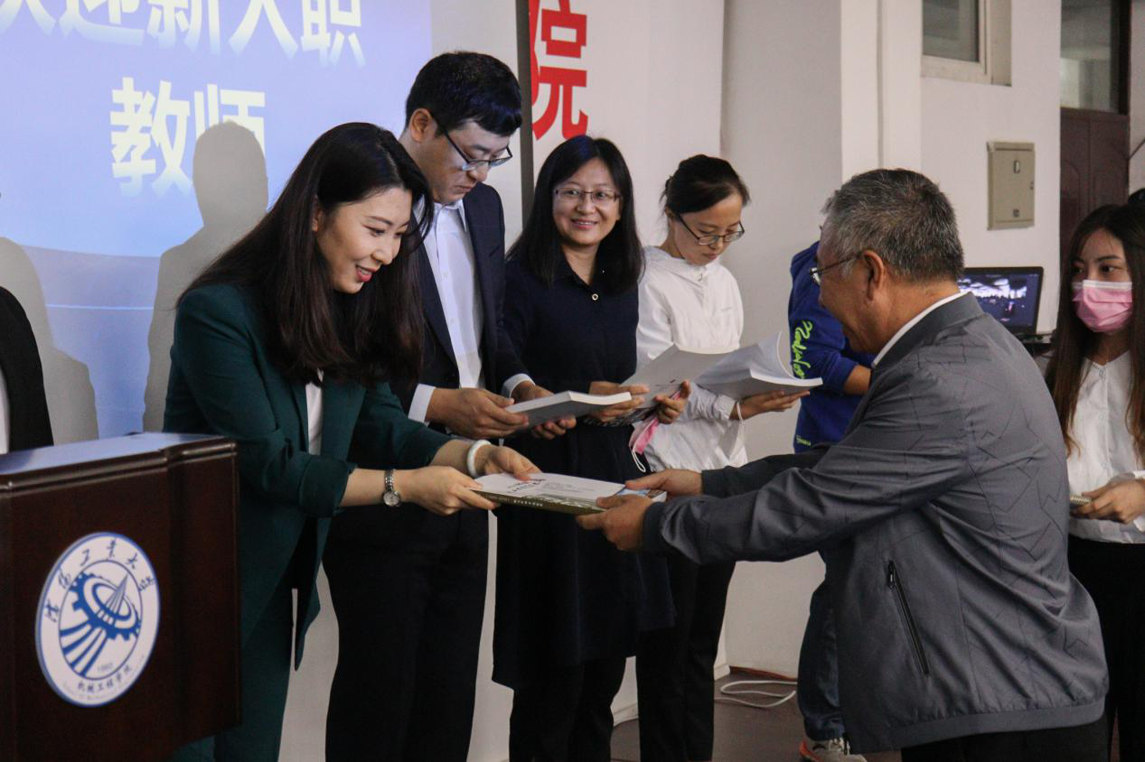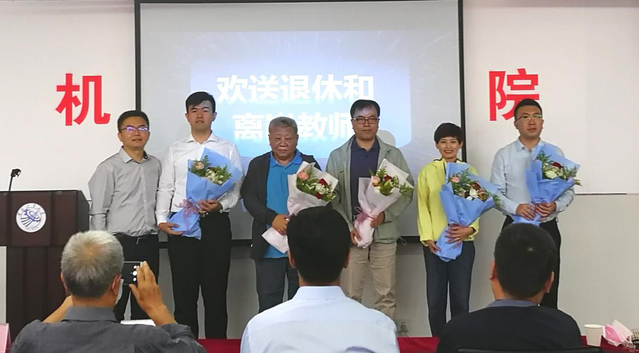 一是为新入职教师举行欢迎仪式及为退休教师金嘉琦、杨琳老师、离岗教师石卿志、陈鹏飞、钱鹏老师举行欢送仪式。郑鹏院长为几位新入职教师赠送《机械学院院史》,党政办公室副主任陶启坤为退休及离岗教师赠送鲜花。