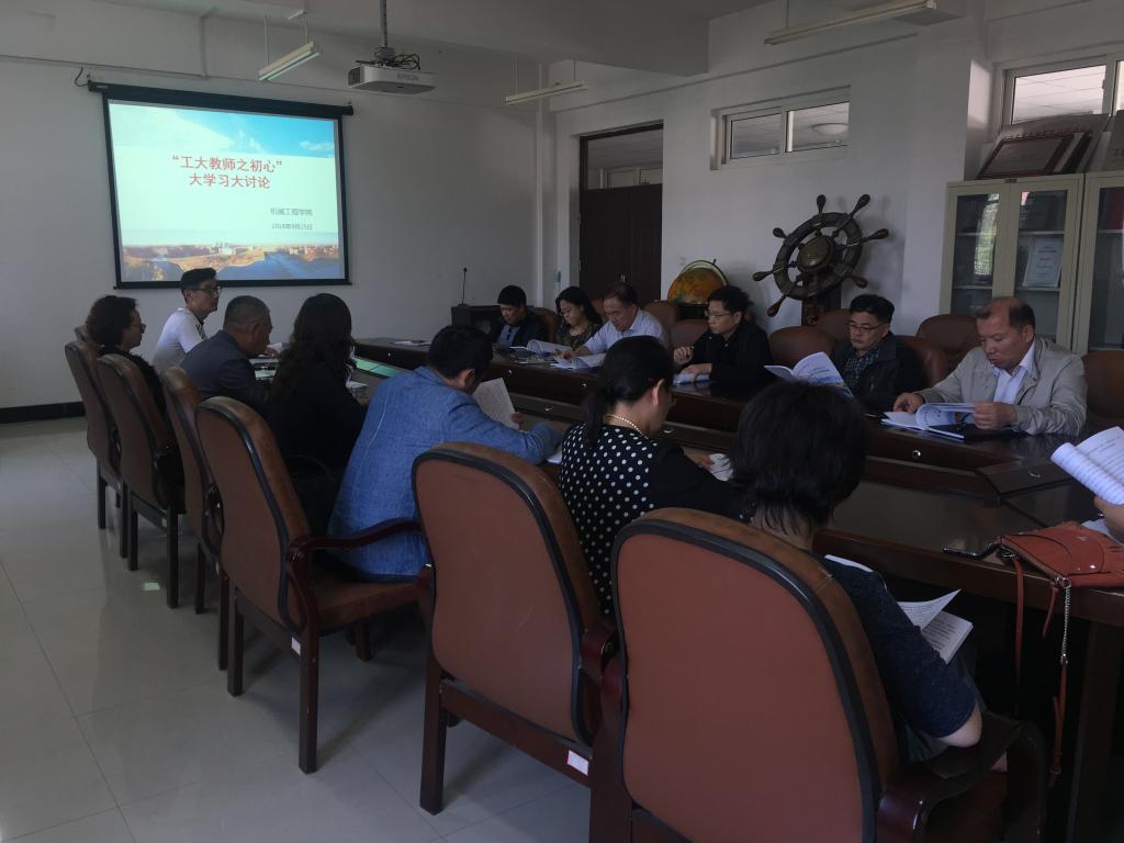 为全面贯彻全国教育大会及新时代全国高等学校本科教育工作会议精神,落实沈工大党发【2018】60号《关于开展“工大教师之初心”大学习大讨论活动的通知》以及沈工大党发【2018】59号《关于认真学习贯彻党委书记刘自康同志在学校庆祝2018年教师节大会上的讲话的通知》的文件要求和具体部署,引导教师回归教育初心,yl6776永利集团于2018年9月25日下午一点在机械楼312召开“工大教师之初心”大学习大讨论动员大会。本次会议由学院党委书记曲弋主持。学院班子成员、党委委员、教授委员会全体成员、教研室主任出席了本次大会。