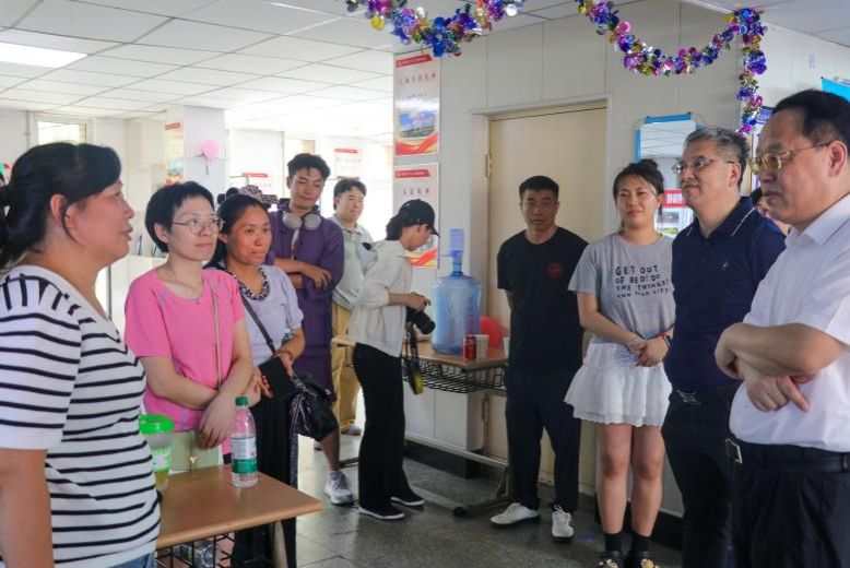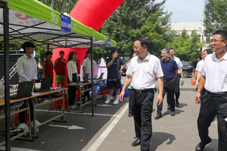 学校领导莅临迎新报到现场指导工作,仔细查看了各服务点位的运行情况,与现场工作人员、志愿者及新生和家长亲切交流,并对学院迎新工作的细致筹备和有序开展给予肯定。