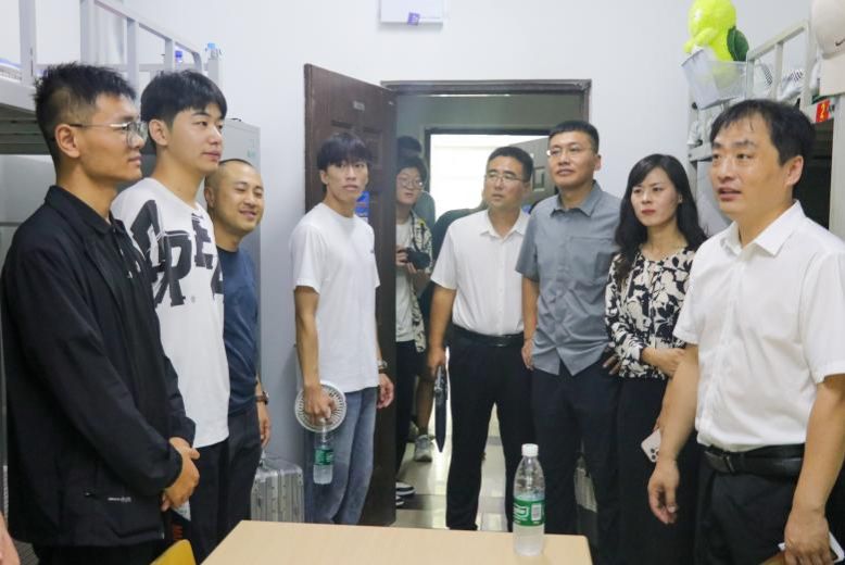 学校及学院领导与新生辅导员一同走访新生寝室,与学生及家长面对面交流表达对新生的期待与鼓励,重点强调了安全问题,提升学生的反诈意识。