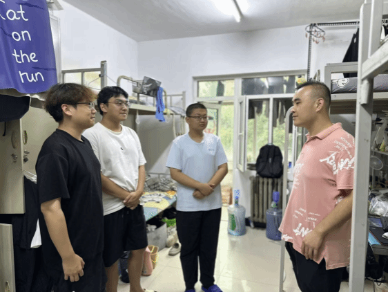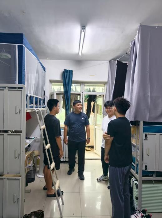 为深入了解师生需求,学院领导与辅导员老师开展多维度走访活动。在教学区域,院领导与任课教师深入交流,针对课程优化、学风建设等问题共商对策;在宿舍区,辅导员逐间走访,关怀学生返校适应情况,重点排查学业困难、经济拮据及心理波动学生,建立“一对一”帮扶台账;军训场上,学院领导与军训教官深入交流,并鼓励大一新生通过军训锤炼意志品质,厚植爱国情怀。系列走访活动拉近了师生距离,为本学期开展精准思政工作打下坚实基础。