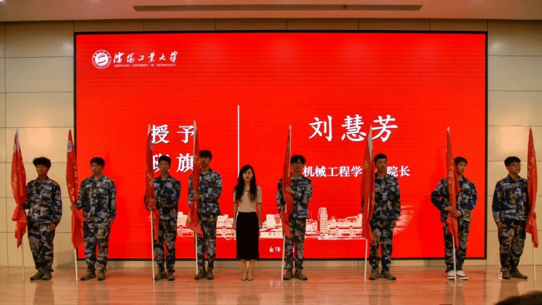 学院副院长刘慧芳教授为新生班级授予班旗。一面面象征着集体荣誉与使命的旗帜被郑重地交到新生代表手中。这一刻,不仅标志着2025级各班级组织的正式建立,更象征着机械人精神的接续与传承。