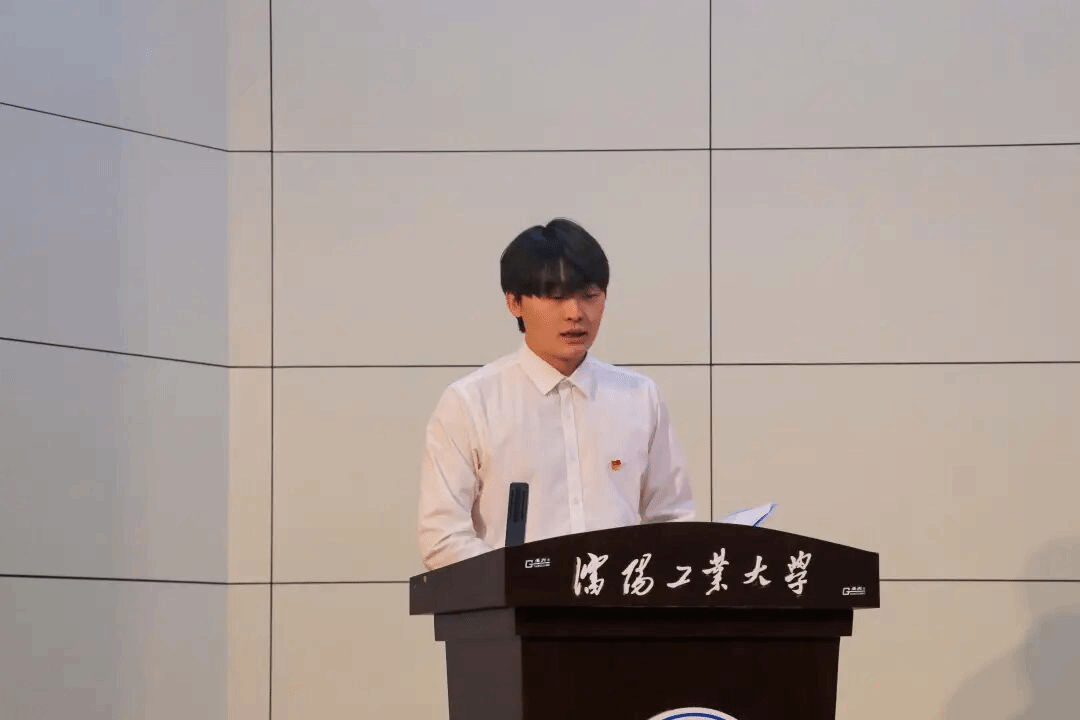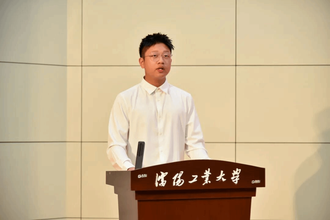 在校生代表、学院团委学生会执行主席、机自2206班王献梓同学代表在校生发言。他以学长视角,生动分享了自己从迷茫到坚定的成长蜕变,从课业攻坚到科创竞赛的实战心得,并暖心建议新生“既要埋首读书,也要抬头看路”,主动拥抱大学提供的各种机遇。