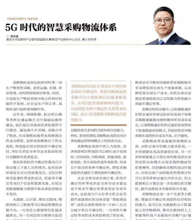 如果说从《刷牙报》中看到的是大成师兄的学识广博,那么从大成师兄所坚持的另一项“业余事务”中看到的却是他学术造诣的精深,这项“业余事务”就是每周要应约为新华社《经济参考报》撰写“刘大成每周物流评论”,迄今为止,已经发表了百余期专栏文章。这百余篇物流评论文章如果通读下来,大概连笔者这样的物流专业的门卫汉也能成为半个“物流专家”了。且看这样一组标题:《刘大成:铁路智慧供应链支撑实现货运跨界收益》,说的是铁路货运、智慧物流、供应链;再看这篇《刘大成:以智慧供应链和供应链金融统领物流产业发展》,说的是数字技术支撑的智慧供应链和资本支撑的供应链金融,专业已经从物流行业“跨越”到了资本运作;再看这篇《刘大成:标准装载单元与智慧物流互为助力》,视角已经聚焦到了“标准集装箱+标准组合分箱”以及“门到门”快递物流运载;再看《刘大成:农业智慧供应链,可帮助破解“三农”问题》,他的关注点又从5G时代的智慧物流转移到了农业、农村、农民的发展……试想一下,如果不是超常的勤奋,如果没有扎实的积累,如果缺少坚持和笃定,这些知识、见解、文字将从何而来?