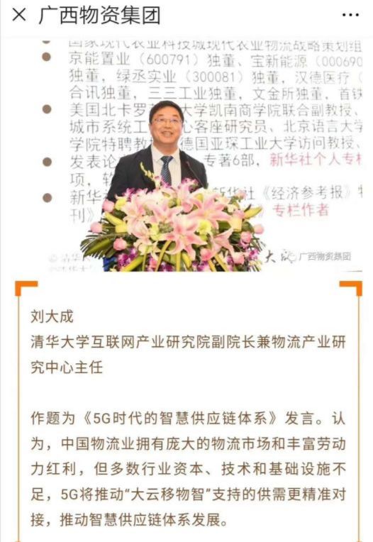 刘大成,清华园里一个快乐的教书匠,授课、研究、刷博,最喜欢与学生在一起聊天。爱好广泛,涉猎繁杂,喜欢侃谈,乐于交友。自1998年就在清华任教,2001年国内最早开设《供应链管理》课程,现任清华大学工业工程系博导,清华大学互联网产业研究院副院长兼物流产业中心主任,美国北卡罗莱纳大学凯南商学院联合副教授,被评为“改革开放40年交通运输与物流杰出专家40人”。研究方向是铁路供应链、智慧物流与供应链管理、产业链生态、物流园区规划,企业诊断与效率改善等,首提“第二代多式联运”、“区块链与供应链双链融合”。