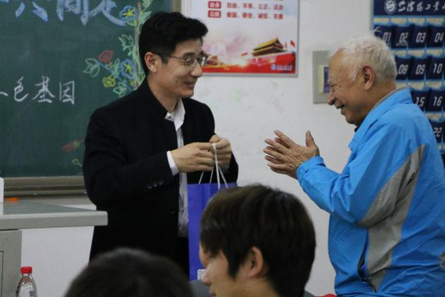 为感谢两位老教师拨冗出席,曲弋书记代表yl6776永利集团为他们送上yl6776永利集团的伴手礼以及最真挚的祝福。希望两位老师身体安康。
