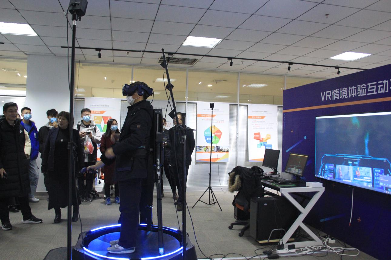 到达公司后,在张剑教授和董事长助理郭峰先生的带领下,师生先后参观了“165KG工业机器人”、“洛哈思 智能腕表”、“药物研发认知行为评价舱”及VR工厂体验等项目,师生们边听讲解边驻足观看,去感受科技创新的魅力,并通过VR技术的亲身体验,使全体师生们感受到了科技发展带来的巨大变化。在五楼的会议厅中,院长助理孙科铭先生详细介绍了沈阳创新设计服务中心的创新业务、创新作品以及取得的成就。