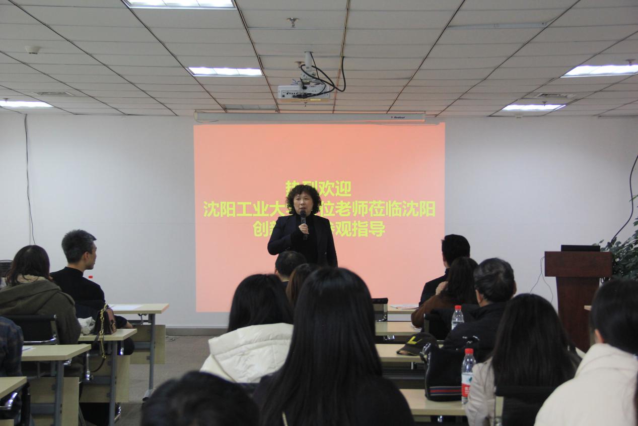 张剑教授发表讲话,她详细介绍了工业设计专业从无到有,直至成为辽宁省首批一流本科示范专业,以及设计中心从实力薄弱到行业翘楚的过程。她认为沈阳创新设计服务平台的创立拓宽了视野——“见到了以前没有见过的风景,见到了以前见不到的人”。张剑老师衷心地希望学院和中心继续联手合作,一起打造水平更高、影响力更大的沈阳创新设计服务平台,这不仅对整个专业的建设、行业的发展、学院学科的发展有推动作用,而且对于我们新一轮的“双一流”建设也有着深远的意义。