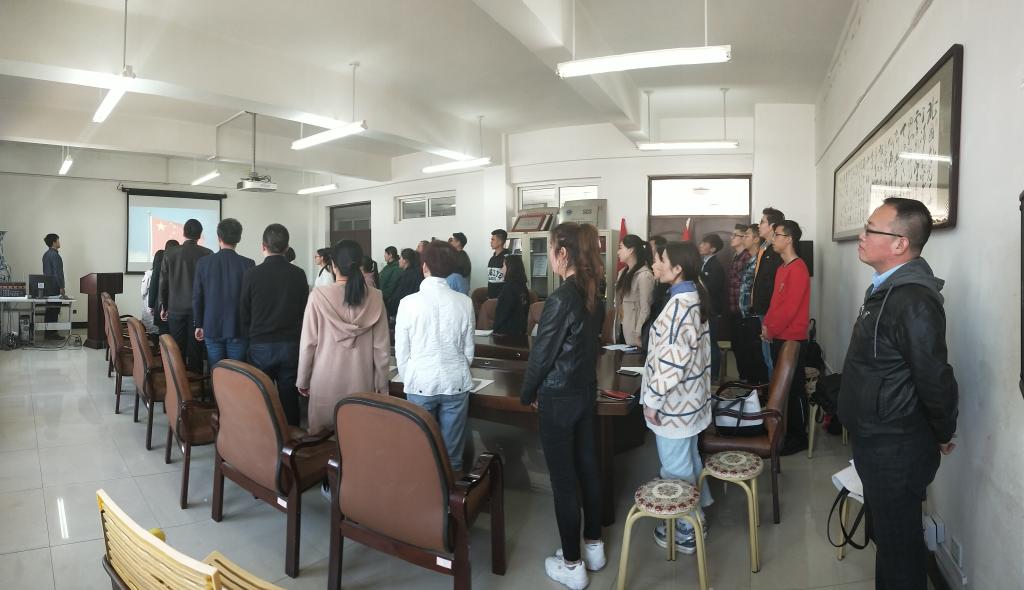 会议的最后,孙健对学生工作进行了部署。孙健院长送给新疆籍少数民族学生四句话,一是大到全世界人民,小到在座的你我,都要热爱和平;二是新疆反恐工作目前取得了很大的成绩,大家都要以保护好国家领土为己任;三是要认清三股势力的恶劣行径,分清黑白;四是无论新疆、西藏都是我们国家不可分割的一部分,身为一名中国人,要热爱国家,共同致力于和平发展。张砺军为学生工作提出了新要求。他向同学们介绍了《新疆反恐、去极端化斗争与人权保障》白皮书的部分内容,以此强调学生应该不断提高思想认识,坚决预防和打击新疆恐怖主义,维护民族团结。最后,与会人员全体起立,奏唱国歌,以饱满的爱国之情唱响对民族统一和民族团结的坚定信念和决心,会议氛围就此推向高潮。