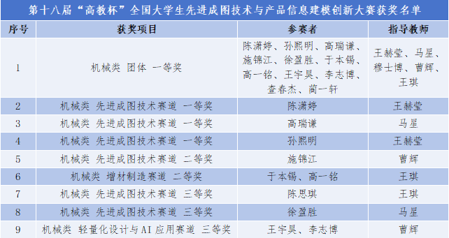 本次大赛的载誉而归,不仅提高了学生的应用能力、创新能力、实践能力及团队协作能力,培养了学生严谨的工程意识和大国工匠精神,也更加增强了学生与诸多名校大学生同场竞技的信心。本次大赛还有效检验了图学教师的教学能力,促进了工程图学课程的教学研究与改革,提高了教学质量及竞赛水平,对基础学科拔尖人才培养具有深远意义。