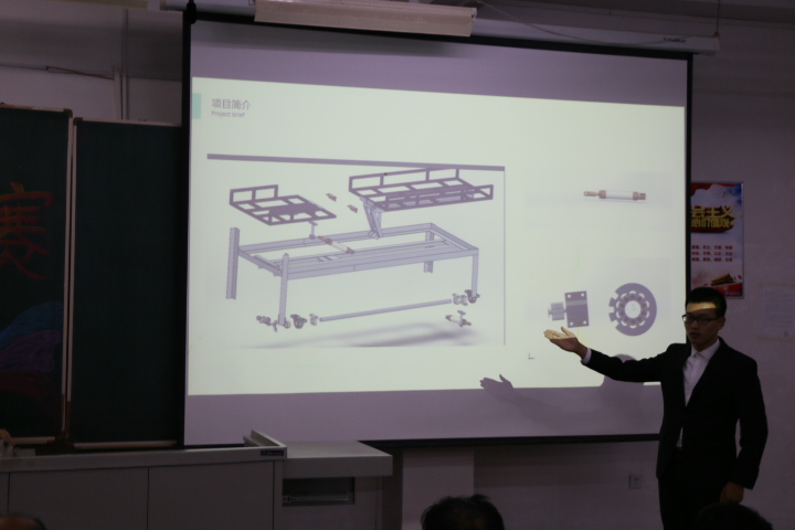 参与本次大赛的队伍共有27组,比赛一开始,选手们就开始了激烈的角逐,各具风采、互不相让,有的人沉着冷静,有的人热情激昂。选手们从设计背景、产品结构、创新之处以及应用前景等方面认真详细地介绍了自己团队的作品,每一个产品都体现了设计者的想法和创意,选手们将“机械原理”、“机械设计”等课程的设计原理与方法应用到参赛作品的设计中,注重作品原理、功能、结构上的创新。