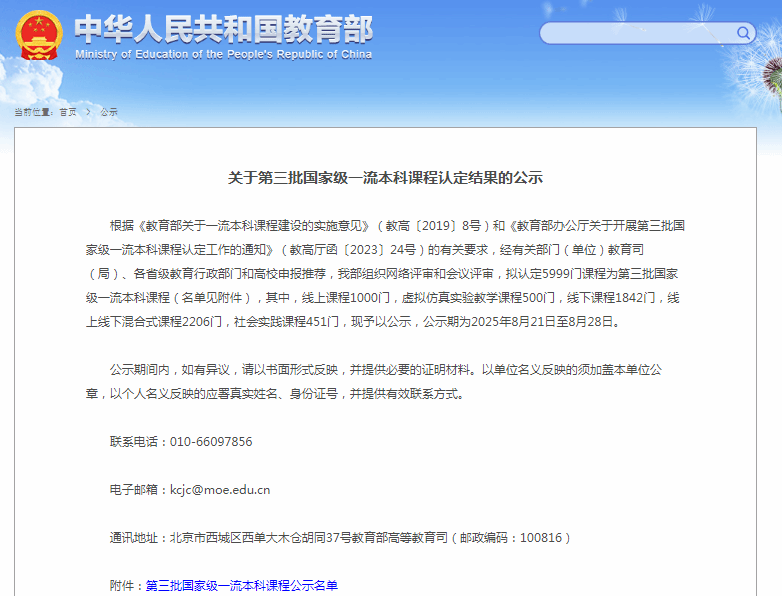 8月21日,教育部公布第三批国家级一流本科课程认定结果,我院《工程制图》课程被认定为线上线下混合式国家级一流本科课程。